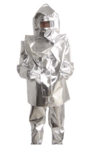 - Namijenjeno je zaštiti kod prilaza vatri, zaštiti od intenzivne topline i povremenog plamena. Izrađeno je dvoslojno (izvana – aluminizirana vlakna, iznutra – staklena vlakna. Upotrebljava se u ljevaonicama, pri radu s tekućim metalima i sl. Sastavni dijelovi aluminiziranog odijela su kapuljača s kacigom iznutra, s vizirom (prozirni ili zatamnjeni), jakna, hlače, navlake za cipele te rukavice s pet prstiju duge 38 cm